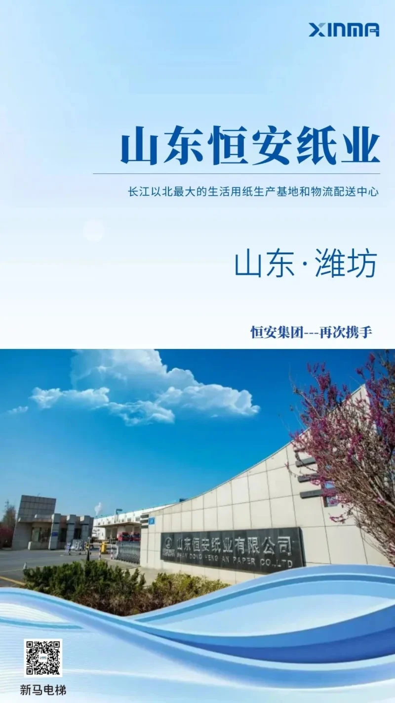 恒安集团作为新马电梯深耕多年的资深战略伙伴,双方携手同行、互信共赢。此次针对旗下子公司山东恒安纸业的运营需求,新马电梯以高效节能、稳定可靠的SEF500系列载货电梯,精准赋能企业高效生产,助力巩固行业优势。